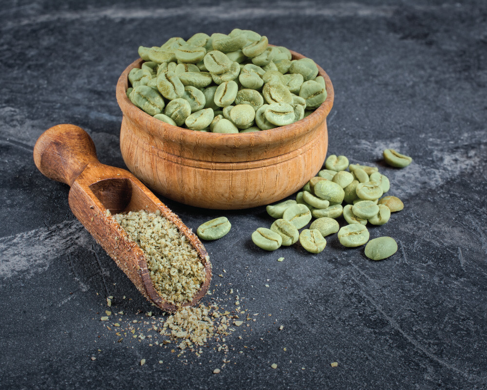 Green coffee beans are basically just raw and unroasted coffee beans (1). It has been proven to improve blood pressure and cholesterol levels as well as aid in weight loss (1). They contain caffeine, and caffeine has been shown to help reduce body weight, BMI, and body fat, but researches have been talking about how the chlorogenic acids are the real kicker for weight loss is chlorogenic acids that are within the green coffee beans (1). Chlorogenic acids are a group of antioxidant compounds that help lower blood sugar levels, reduce insulin spikes by reducing carbohydrate absorption in the digestive tract, as well as boost fat metabolism, lower cholesterol and triglyceride levels and improve obesity-related hormone levels (1).